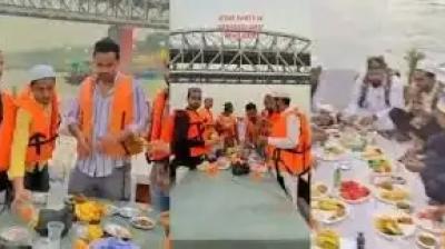 गंगा में नाव पर इफ्तारी का वीडियो वायरल, नॉनवेज खाने के आरोप