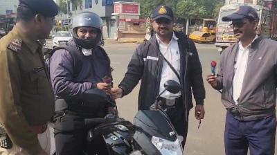 यातायात नियमों की मिसाल बनीं बुजुर्ग महिला, किया गया सम्मानित