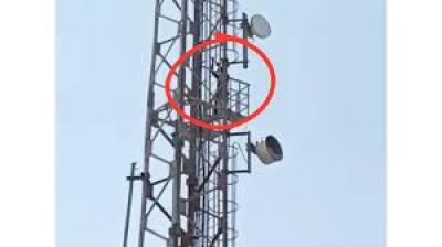गाजीपुर में 'शोले' पार्ट-2: प्रेमिका से मिलने की जिद में टावर पर चढ़ा छत्तीसगढ़ का युवक