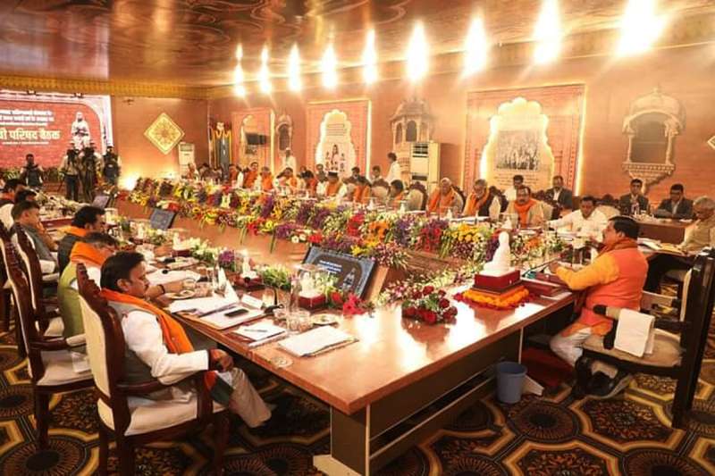 भोपाल: मध्य प्रदेश की डॉ. मोहन यादव ने शुक्रवार को लोकमाता देवी अहिल्या बाई होल्कर की नगरी महेश्वर में हुई कैबिनेट बैठक में ऐतिहासिक फैसला लिया है. मध्य प्रदेश की डॉ. मोहन यादव सरकार ने खरगोन के महेश्वर में 17 धार्मिक नगरों में शराब पर प्रतिबंध लगाने का फैसला लिया है. इसके तहत अब 1 अप्रैल से प्रदेश के 17 धार्मिक नगरों में शराब की दुकानें बंद हो जाएंगी. वहीं विशेष परिस्थितियों में मंत्री अपने विभाग में तबादले कर सकेंगे. इसके साथ ही कैबिनेट ने नारी सशक्तिकरण मिशन को मंजूरी दी है. कैबिनेट बैठक की शुरुआत वंदे मातरम गीत से हुई. कैबिनेट बैठक लोकमाता देवी अहिल्याबाई होल्कर को समर्पित की गई है. मुख्यमंत्री के सामने टेबल पर अहिल्या माता की प्रतिमा रखी गई. कैबिनेट से पहले मुख्यमंत्री डॉ. मोहन यादव ने अहिल्या घाट पर मंत्रियों के साथ नर्मदा पूजन किया।