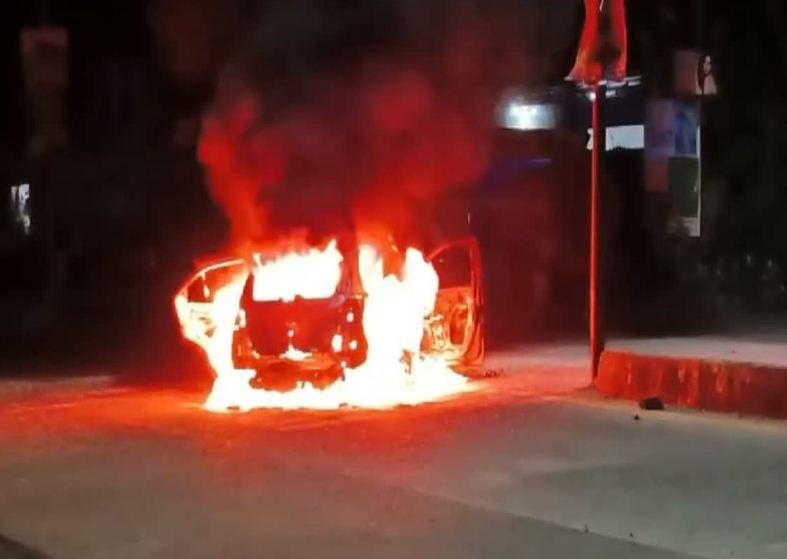 हाईवे पर दौड़ी ‘द बर्निंग कार’, मचा हडक़ंप, चालक की समझदारी से टली बड़ी दुर्घटना