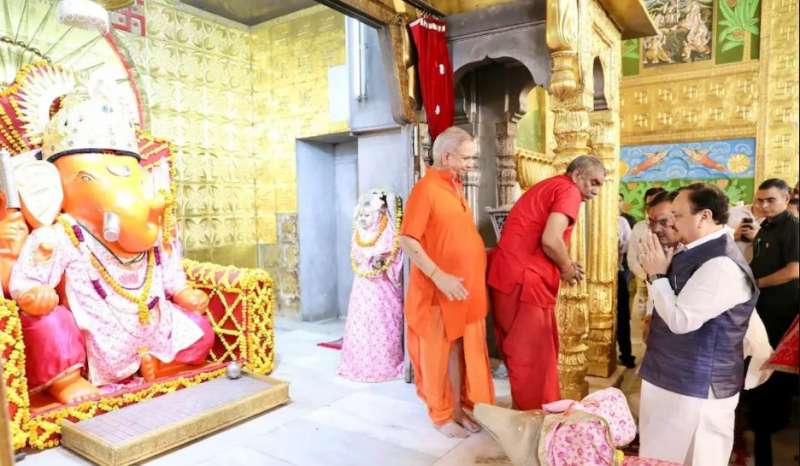 JP Nadda in Jaipur: भाजपा के राष्ट्रीय अध्यक्ष जेपी नड्डा शनिवार को एक दिवसीय दौरे पर जयपुर आए। वे रात करीब 10 बजे मुख्यमंत्री भजनलाल शर्मा के साथ मोतीडूंगरी गणेश मंदिर में दर्शन करने गए। दोनों नेताओं ने जैसे ही मंदिर में प्रवेश किया, वैसे ही बिजली गुल हो गई। वीवीआइपी मूवमेंट के दौरान मंदिर में बिजली गुल होते ही वहां मौजूद अफसरों में खलबली मच गई। मंदिर प्रबंधन ने आनन-फानन में जनरेटर चलाया, तब बिजली सप्लाई बहाल हुई। इस दौरान दोनों नेता करीब 12 मिनट तक अंधेरे में रहे।