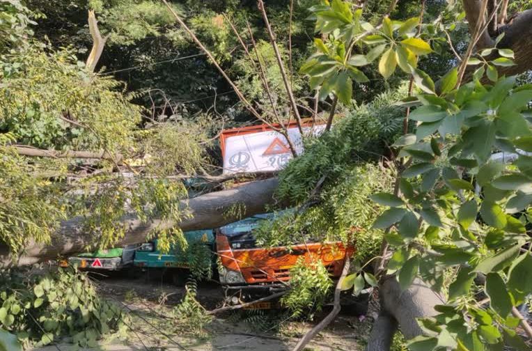 बारिश के कारण पेड़ की जड़ें हुईं कमजोर