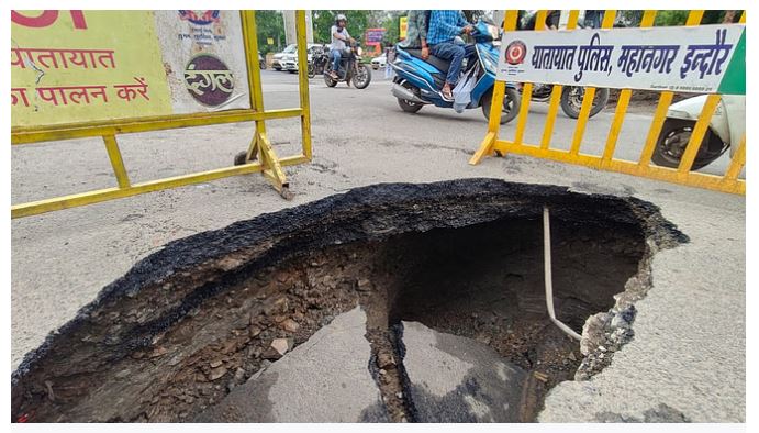 इंदौर। इंदौर के विजयनगर क्षेत्र में शुक्रवार को सड़क का एक बड़ा हिस्सा धंसने और उसमें चार फीट गहरा गड्ढा होने की जांच पूरी हो गई। नगर निगम ने एयरटेल कंपनी को गड्ढे के लिए जिम्मेदार बताया। अफसरों का कहना है कि बगैर अनुमति कंपनी ने खुदाई की और नर्मदा लाइन फोड़ दी। रिसाव होने के कारण सड़क पर गड्ढा हो गया था। शुक्रवार को विजय नगर क्षेत्र में गहरा गड्ढा होने की घटना सोशल मीडिया पर खूब वायरल हुई। नगर निगम ने पहले ताबड़तोड़ गड्ढा भरवा दिया, लेकिन शनिवार को फिर खुदाई कर फूटी पाइप लाइन को सुधारा गया।