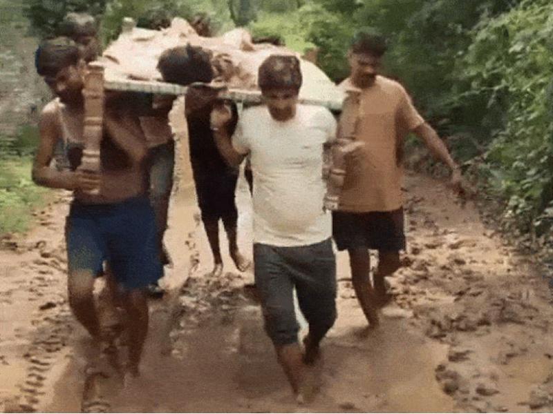 MP के मैहर में विकास की पोल खुली: सड़क न होने से नहीं आई एंबुलेंस, खाट पर 2 KM बीमार को लेकर चले ग्रामीण
