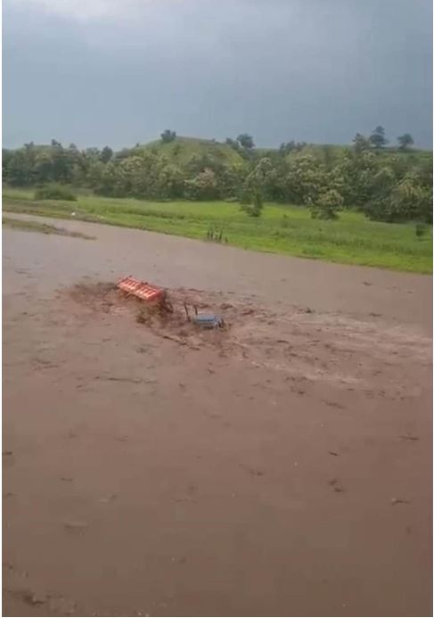 रेत निकालने के दौरान नदी में उमड़ा पानी, दोनों युवकों की जान पर बनी आफत, ट्रैक्टर समेत फंस गए बीच धारा में