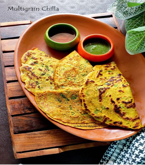 - आपका स्वादिष्ट और पौष्टिक मल्टीग्रेन चीला तैयार है। इसे दही, हरी चटनी या अचार के साथ गरम-गरम परोसें।
