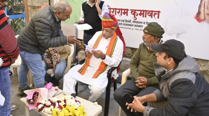 जयपुर । पशुपालन मंत्री जोराराम कुमावत ने पाली जिले के सुमेरपुर तहसील मुख्यालय और विभिन्न गांवों में ग्रामीणों की समस्याएं सुनी। कुछ समस्याओं का समाधान करने के लिए उन्होंने सम्बंधित अधिकारियों को निर्देश दिए तथा अन्य समस्याओं के समाधान के लिए मौके पर जाकर स्थिति देखने व नियमानुसार समाधान करने के निर्देया दिए।