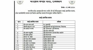 Bharatiya Janata Party की राजस्थान प्रदेश कार्यसमिति घोषित, सभी जिलों को प्रतिनिधित्व
