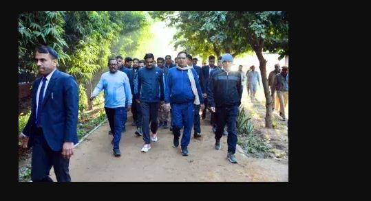 जयपुर । मुख्यमंत्री भजनलाल शर्मा ने जयपुर के सेंट्रल पार्क में मॉर्निंग वॉक किया। उन्होंने वॉक के साथ लोगों से संवाद भी किया। उन्होंने प्रधानमंत्री नरेंद्र मोदी के फिट इंडिया अभियान के संकल्प को साकार करने की दिशा में अपना महत्वपूर्ण योगदान देने का संदेश दिया। इस दौरान मुख्यमंत्री को अचानक अपने बीच पाकर लोग पहले तो आश्चर्यचकित हुए, फिर उनके साथ ही कदमताल मिलाते हुए वॉक करने लगे।