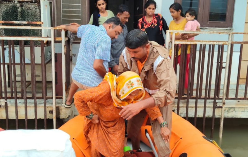 एसडीआरएफ की टीमों ने अत्यधिक जल भराव वाले क्षेत्रों से लोगों को निकालकर आश्रय स्थलों तक पहुंचाया।