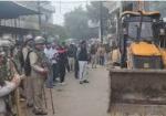 महाराजा यशवंतराव अस्पताल परिसर में बाउंड्री वॉल पर चला बुलडोजर -