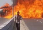 नेशनल हाईवे पर तेल टैंकर पलटा, 200 मीटर तक फैली भीषण आग -