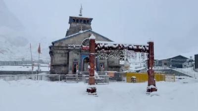 बर्फ में लिपटा केदारनाथ धाम, यात्रा पर संकट गहराया; मौसम विभाग का आज भी अलर्ट जारी