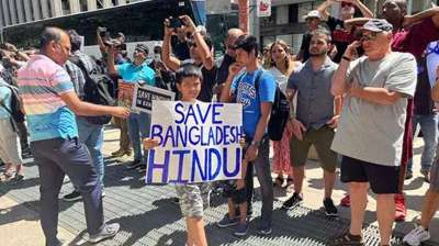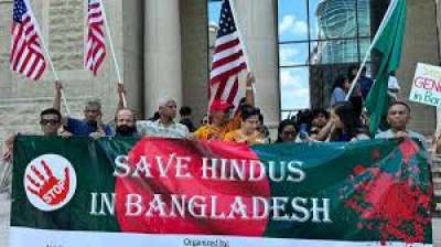 बांग्लादेश में अल्पसंख्यकों के खिलाफ हिंसा के विरोध में अमेरिका में प्रदर्शन