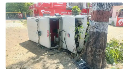 सीहोर के पास मंत्री शिवराज सिंह चौहान के काफिले का पुलिस का वाहन पलटा, 3 घायल