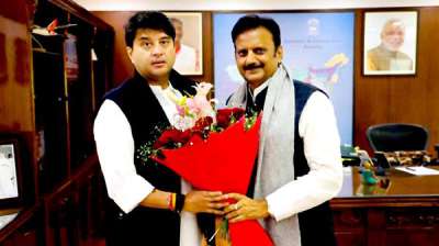 उप मुख्यमंत्री शुक्ल ने केंद्रीय नागरिक विमानन मंत्री सिंधिया से सौजन्य भेंट की