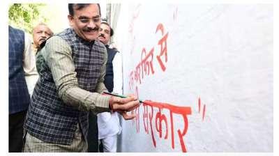 भोपाल । भाजपा का दीवार लेखन अभियान सोमवार को प्रदेशभर में शुरू हो गया है। भाजपा प्रदेश अध्यक्ष वीडी शर्मा ने अभियान की शुरुआत शिवाजी नगर में दीवार लेखन का शुभारंभ...