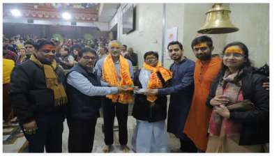 महाकाल मंदिर की व्यवस्थाओं से खुश, 2 लाख 50 हजार का चेक एवं 51 हजार रुपये नगद के सम्मान में अर्पण किया