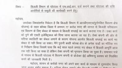 बिजली विभाग में 77 करोड़ घोटाले का आरोप लगाया सभापति नूतन सिंह ठाकुर ने