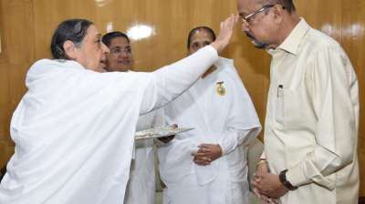 राज्यपाल रमेन डेका कोे ब्रम्हकुमारी बहनों ने भाई दूज का टीका लगाया