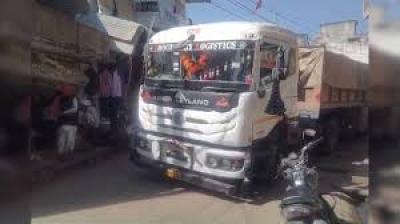 गूगल मैप के भरोसे पड़ा महंगा, गली में घुसा ट्रेलर, कई वाहन क्षतिग्रस्त