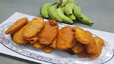 सामग्री- 1 बड़ा हरा कच्चा केला,2 बड़े चम्मच चावल का आटा,1/4 छोटा चम्मच हल्दी,आवश्यकता अनुसार नमक,1 कप सरसों का तेल,3/4 कप बेसन,1/2 छोटा चम्मच बेकिंग सोडा,1/2 छोटा चम्मच लाल मिर्च पाउडर,1/4...