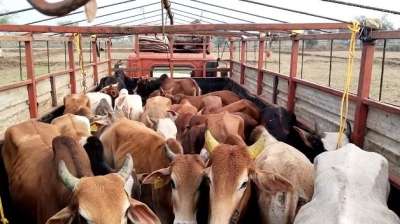 भीलवाड़ा: गोवंश से भरा ट्रक पकड़ा, ड्राइवर फरार, गोभक्तों ने लगाई आग