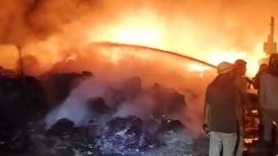 प्लास्टिक रीसायकल फैक्ट्री में लगी आग, प्लास्टिक जला