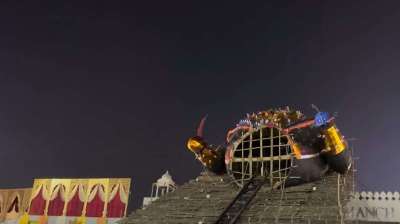 कोटा में रावण दहन से पहले हादसा, क्रेन से उठाते वक्त गिरा दशानन का पुतला