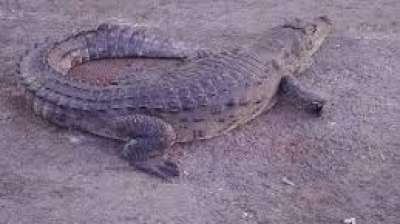 कोटा बैराज पर आया भारी-भरकम मगरमच्छ