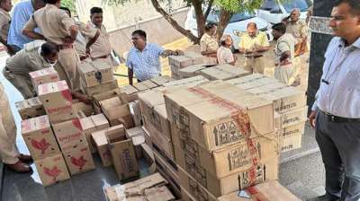 आबूरोड में पुलिस ने पांच अलग-अलग मामलों में कार्रवाई कर, जब्त शराब की 1350 पेटियां नष्ट
