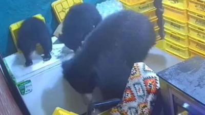 दुकान में घुसे भालू, सामान तोड़ा और जमकर किया दावत